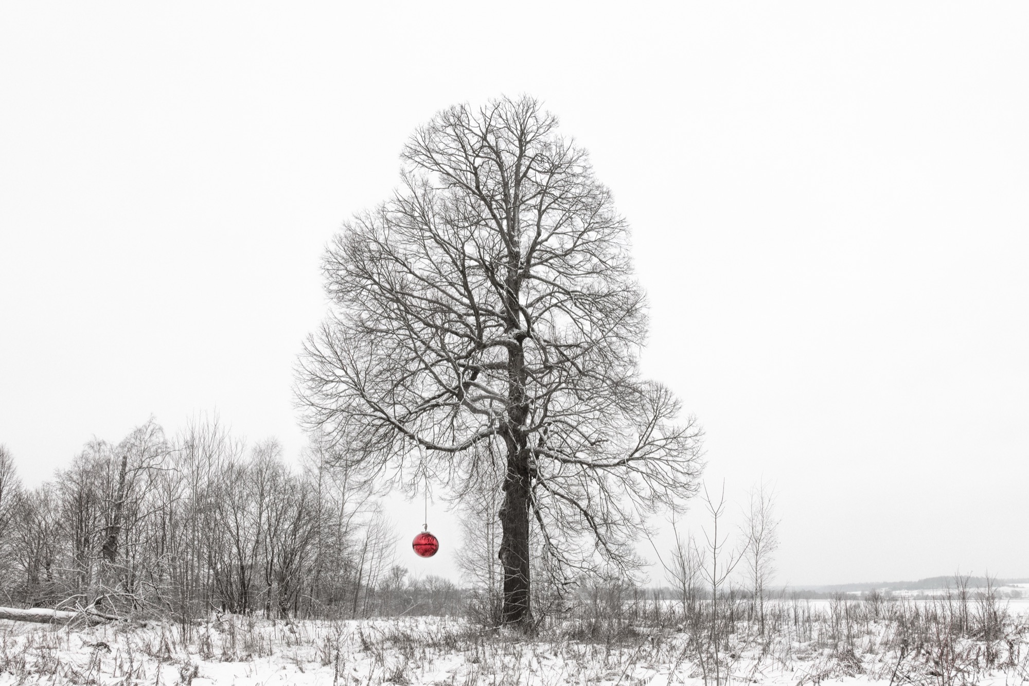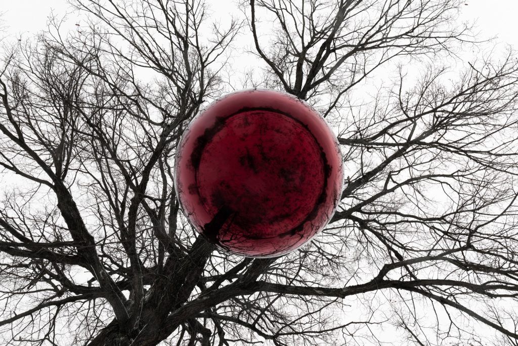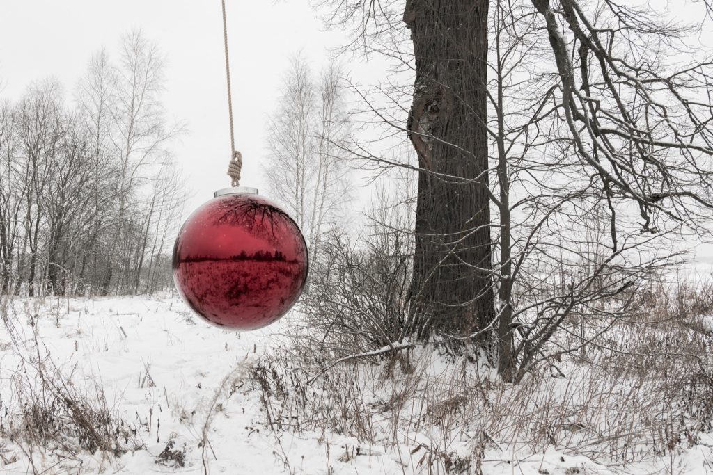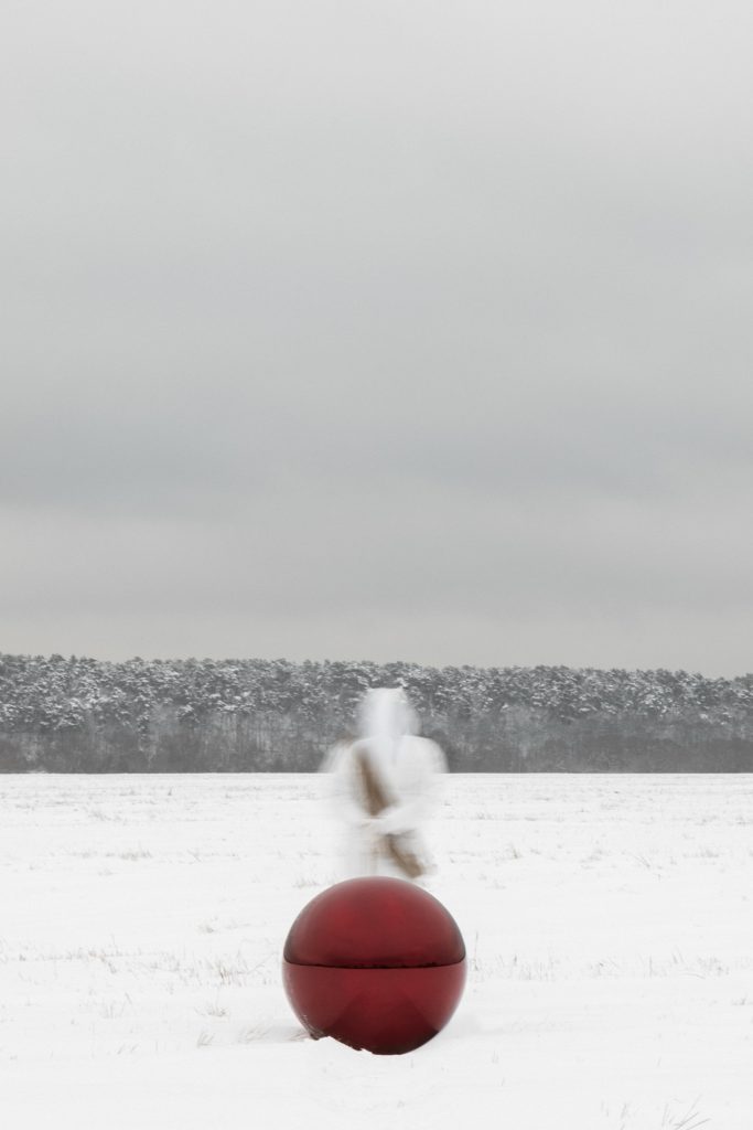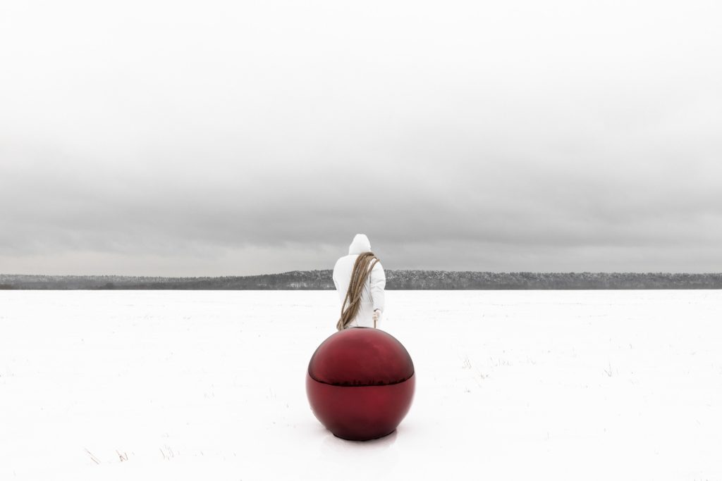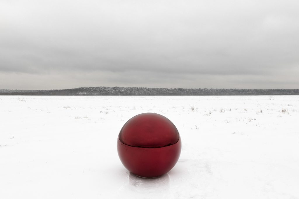 Gravity by Gregory Orekhov situates a red sphere in a suspended state within a Finnish winter landscape
